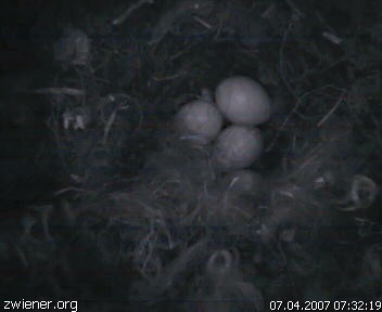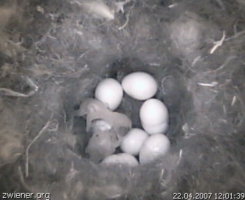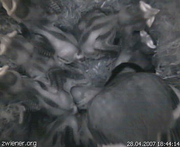 Letzten Sonntag kurz vor 11 Uhr am Vormittag ist ja das erste Küken geschlüpft, die Geschwister kamen im Laufe des Tages nach. Die Eltern sind jetzt den ganzen Tag mit Füttern beschäftigt.
